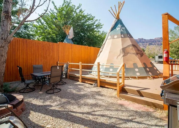Ok Rv Park Glamping Tipi Ok55 Hotel is set in Moab South Valley district, a few steps from Old Spanish Trail Arena. The villa has 1 bedroom and is suitable for 2 people.