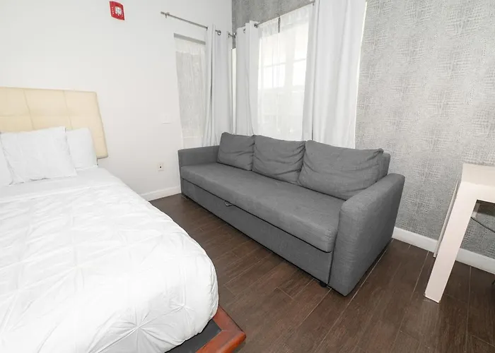 La ubicación de este hotel estiloso lo llevará fácilmente al Mercado Bayside en 15 minutos en coche, y al Memorial del Holocausto que se sitúa a una distancia de unos 15 minutos andando. Boulan South Beach Miami Beach se halla en el barrio South Beach, a 5 minutos andando del Museo de Arte Bass. Hay una playa local a una distancia de menos de 11 minutos andando. La ubicación a un agradable paseo del Centro de Convenciones de Miami Beach es una ventaja para los huéspedes que se alojen en el Boulan South Beach Hotel. El lugar está a 22 minutos en coche del Aeropuerto Internacional de Miami y a 30 minutos en coche de la estación de ferrocarril Miami Airport.