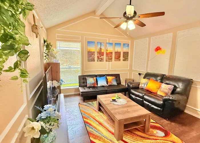Cozy Arlington Bungalow 4/Mins To At&T Stadium is located approximately 10 minutes by car from Howard Moore Park and about 10 minutes' drive from the Ameriquest Globe Life Park in Arlington Field. The villa also has 2 bedrooms and includes a fully-fitted kitchen with a microwave and a fridge.