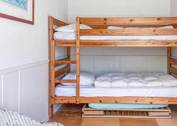 Het heeft ook 2 slaapkamers en een ingerichte keuken die met een waterkoker, een vaatwasser en een oven is uitgerust.