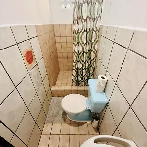 Rooms are overlooking the patio. A separate toilet and a shower, as well as a fridge, a toaster, and kitchenware are featured.