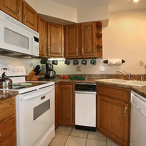 A microwave, a full-sized fridge, and a cooktop are standard in these rooms.